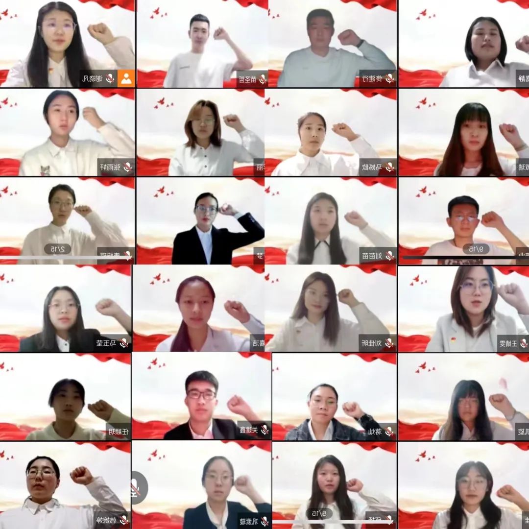 活动伊始,学生第一党支部第一党小组组长荀文政同志带领全体同学线上重温入党誓词,面对鲜红的党旗,党员们庄严宣誓,重温入党时的初心和使命,在思想上再一次接受洗礼。随后全体党员共同聆听《国际歌》,领悟音乐里的初心,感受故事里的使命。