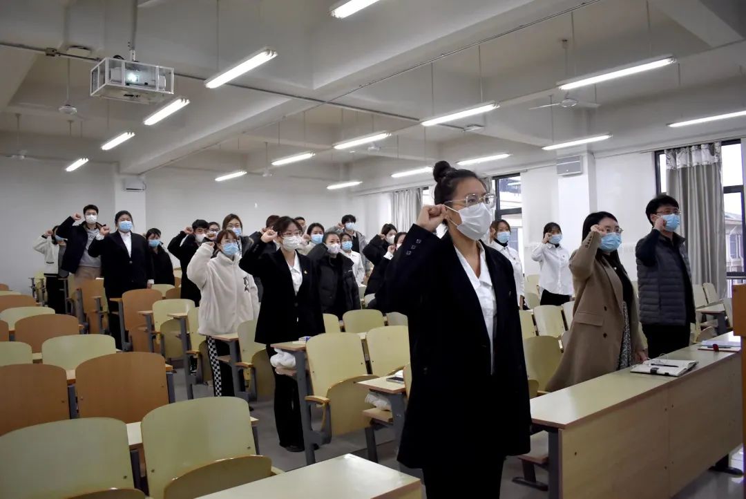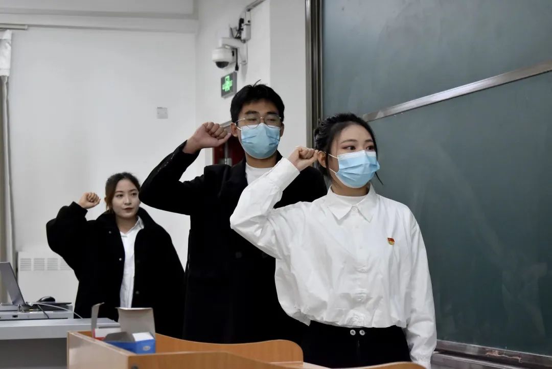 会议伊始,学生党员一起重温入党誓词,全体学生起立,面向党旗,举右手握拳宣誓,以高昂的精神风貌和饱满的热情共读入党誓词。