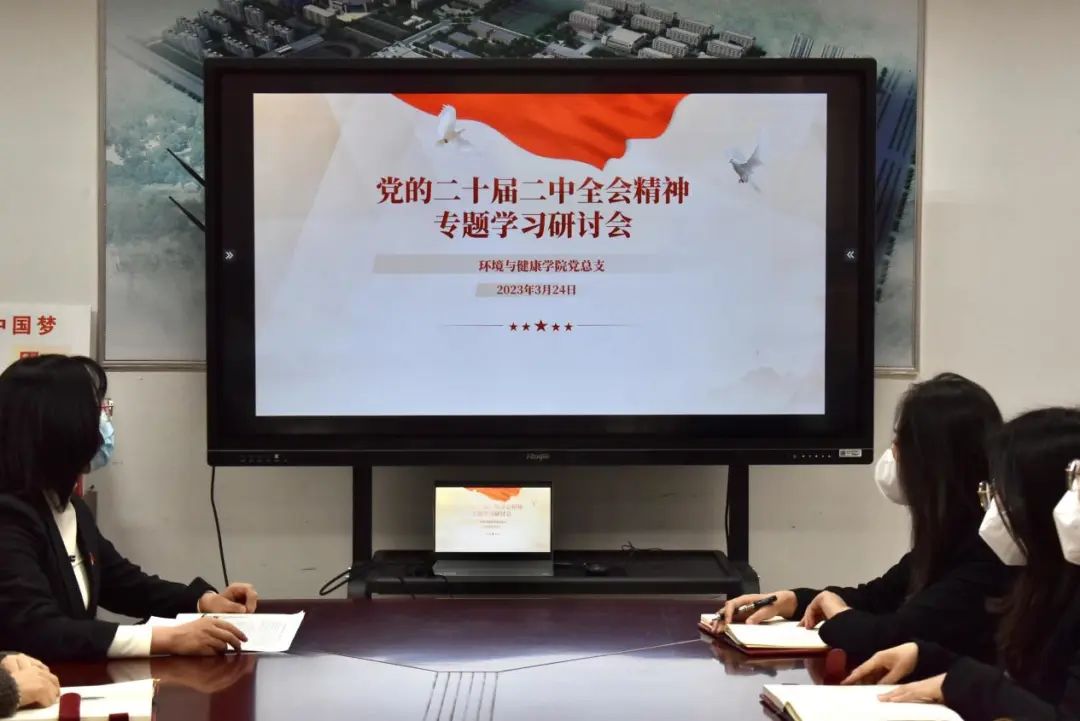 为贯彻落实中国共产党第二十届中央委员会第二次全体会议精神,环境与健康学院党总支于2023年3月召开二十届二中全会专题学习,切实将思想和行动与党中央的决策部署安排保持高度一致,进一步深学深悟,忠实履行党章宪法职责,深入推进全面从严治党,为实现新时代新征程党的使命任务提供坚强保障。