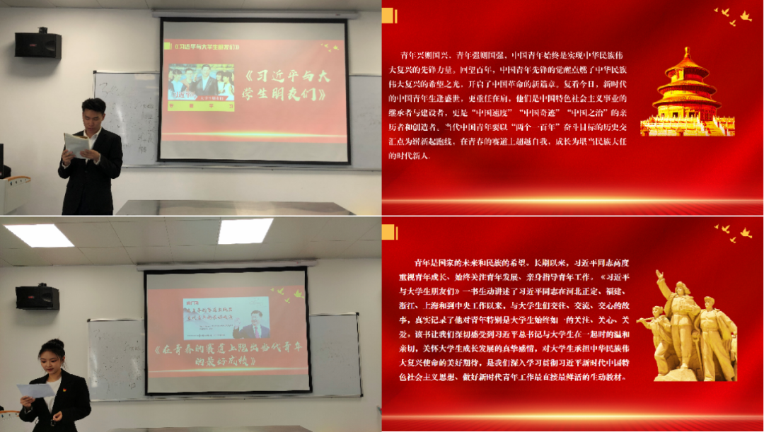分享会上,学生党员代表通过朗诵、演讲、阅读等多种方式生动展现了党员干部牢记嘱托、感恩奋进的感人故事和奋斗历程。并对《在青春的赛道上跑出当代青年的最好成绩》以及《习近平与大学生朋友们》发表感想。一个个感人的故事、一句句激人奋进的话语,让在场学生党员心潮澎湃,纷纷表示将始终牢记习近平总书记的谆谆嘱托,以党的二十大精神为指引,以更加务实的工作作风,以更加昂扬的精神状态,自信自强、守正创新,踔厉奋发、勇毅前行,为全面建设社会主义现代化国家、全面推进中华民族伟大复兴贡献自己的一份力量!