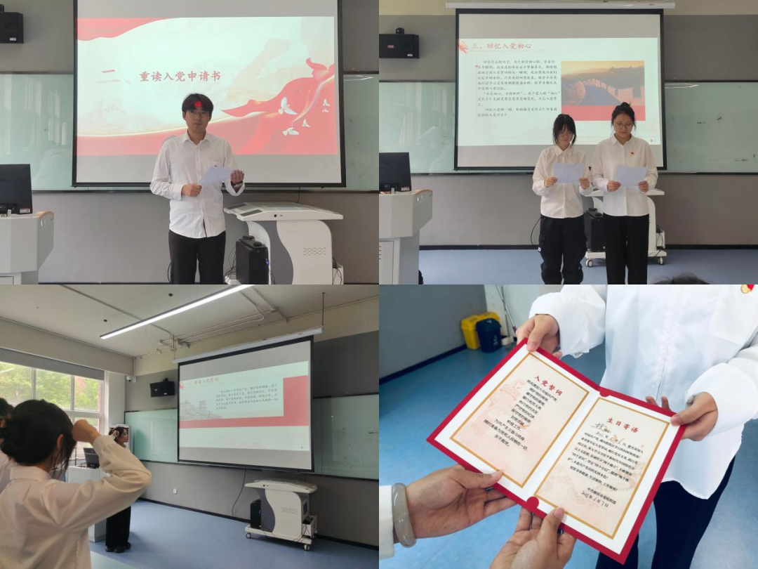 随后,党员代表刘博奥同志饱含深情地回顾了自己的入党历程,感谢党组织在成长之路上给予的关爱与帮助,并在全体支部同志面前做表态发言。通过分享当年入党故事,回顾入党以来的成长历程,畅谈入党以来的感受和体会,结合自身思想、学习、生活、工作和未来方向许下愿望、做出承诺。作为青年党员,我们是幸运的一代人,是生在红旗下、长在春风里的一代人,虽然每个年轻人的经历都有所不同,但都有无穷的潜力和机会。全体党员纷纷表示,在以后奋进路上必将铭记初心,踔厉奋发,勇毅前行。