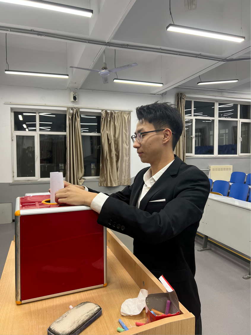 (六)大会选举工作,由共青团环境与健康学院学生会支部筹备组主持。共青团环境与健康学院学生会支部全体团员具有选举权。大会正式选举时,参加选举的团员人数必须超过应到会团员人数的三分之二,方可进行选举。收回的选票数等于或少于发出的选票数,选举有效;收回的选票数多于发出的选票数,选举无效,应重新进行选举。被选举人获得的赞成票超过实到会 团员的半数,始得当选。获得过半数选票的被选举人数多于应选 名额时,以得票多者当选。如遇被选举得票数相等不能确定当选 人时,应就票数相等的被选举人重新投票,以得票多者当选。当 选人少于应选名额时,应对不足名额再次进行选举。仍少于应选名额时,可相应减少应选名额,不再进行选举。(七)选举时,对所列候选人,赞成的划“○ ”, 不赞成的划“ × ”, 弃权的不划任何符号。表示弃权的不能另选他人。如果另选他人时,在候选人下面的空格栏内填写另选人 的姓名,并在其右边的符号栏内划“ ○ ”。每张选票所选人数等于或少于应选人数的为有效票,超过应选人数的为废票。
