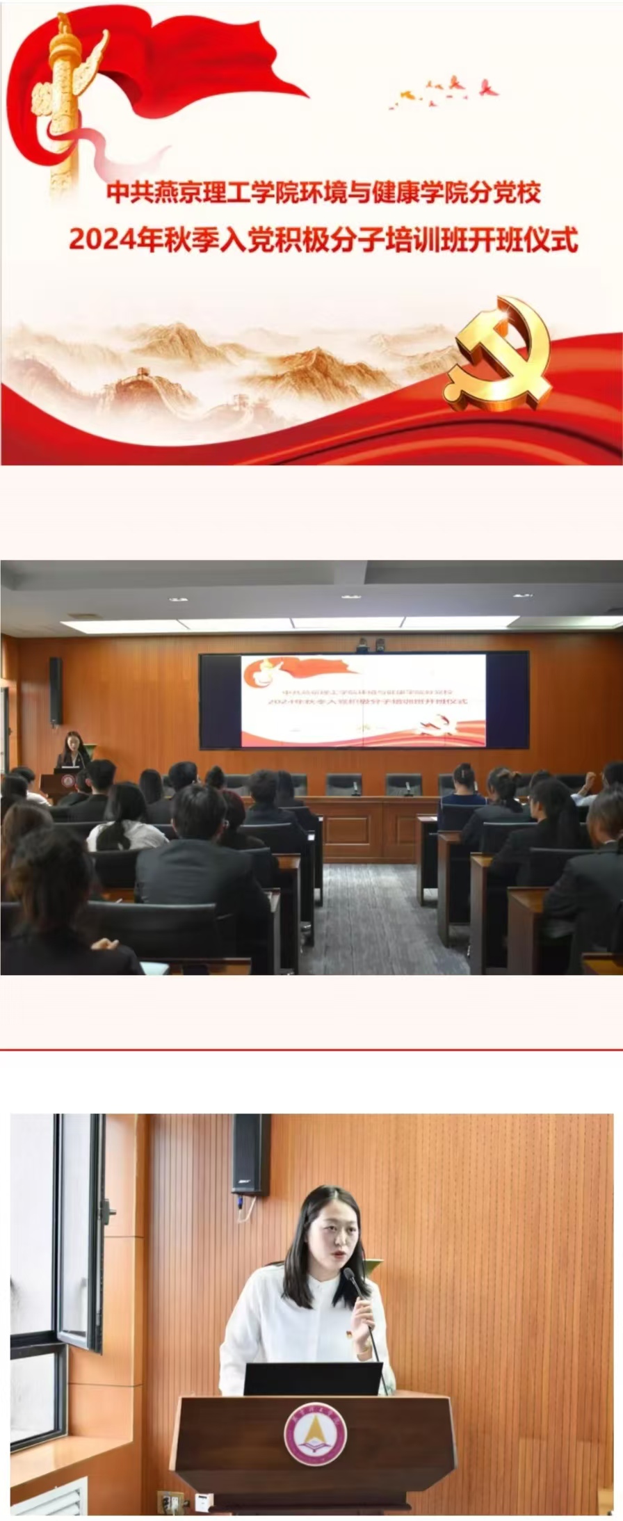 中共燕京理工学院党校环境与健康学院分党校举办2024年秋季入党积极分子培训班开班仪式