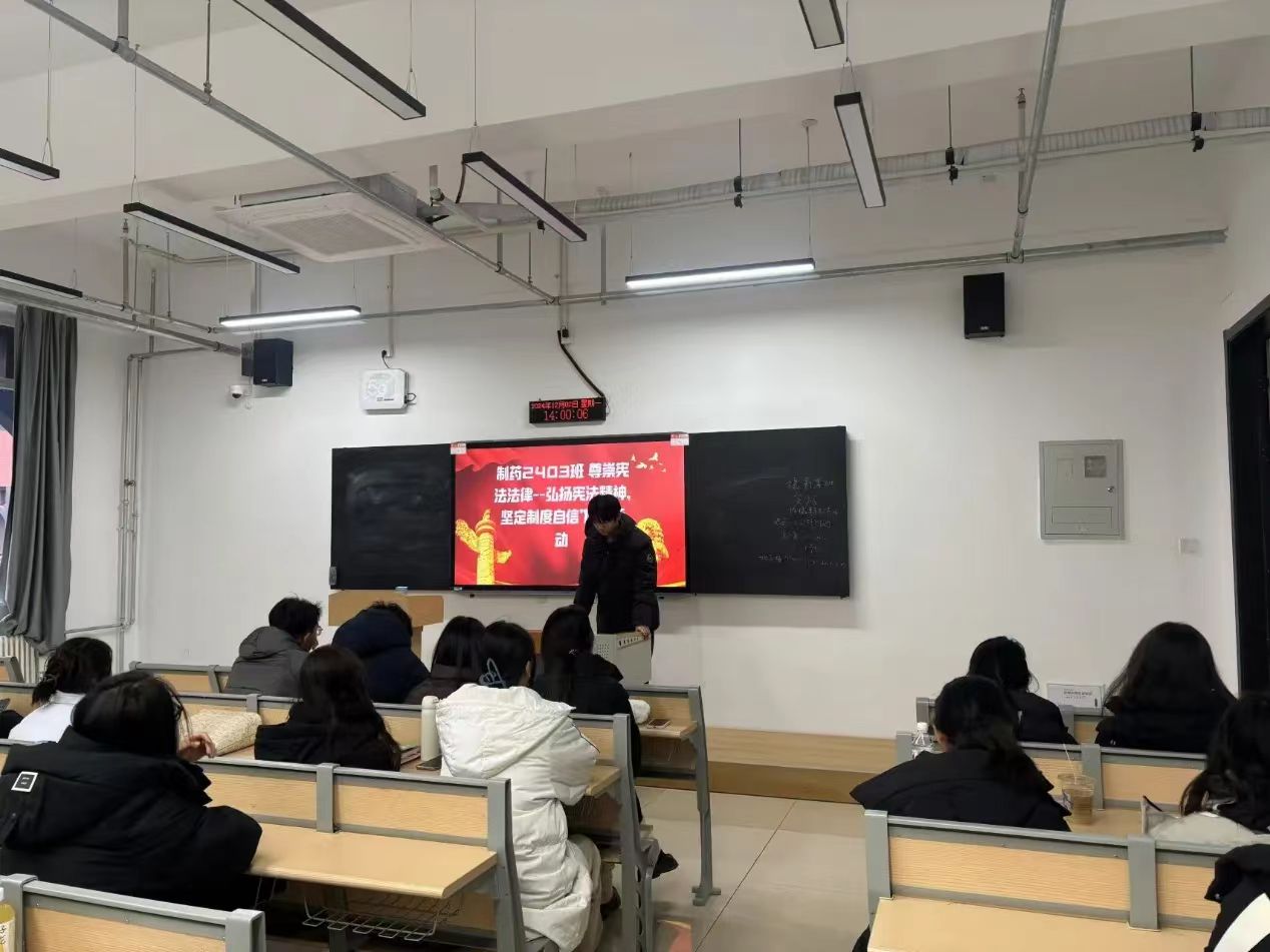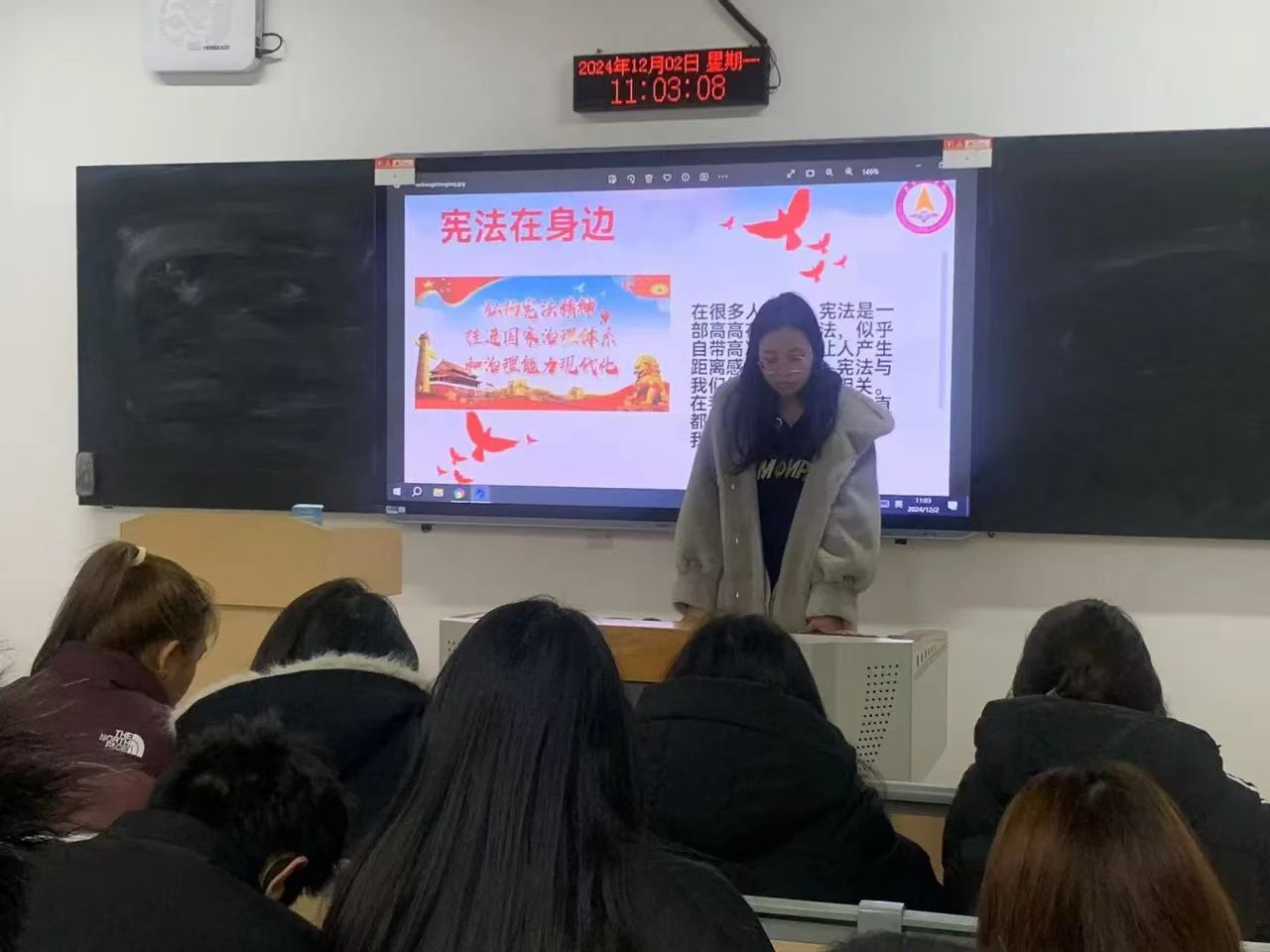 团支书通过详实的阐述,深入介绍了宪法的地位、核心内涵及其发展脉络。同时,借助鲜活生动的案例,以通俗易懂的方式剖析了宪法在日常生活中的应用及其深远影响,使同学们深刻认识到宪法作为国家根本大法的权威性与不可替代性。