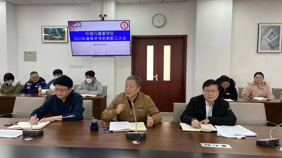 为明确新学期学院发展方向,环境与健康学院于2023年2月22日在办公楼328召开2023年第一次教育工作会议。参加此次会议的有环境与健康学院院长马登军、副院长刘军凯、党总支书记门纪宇以及全体教职工。