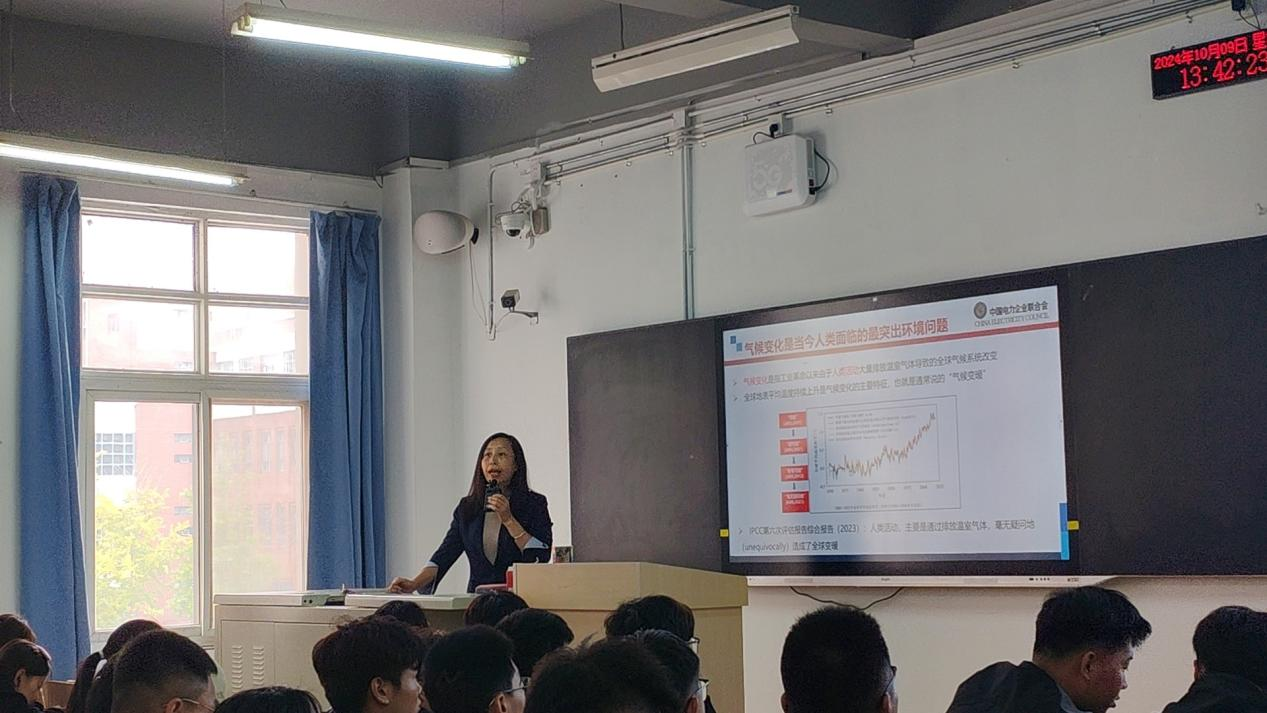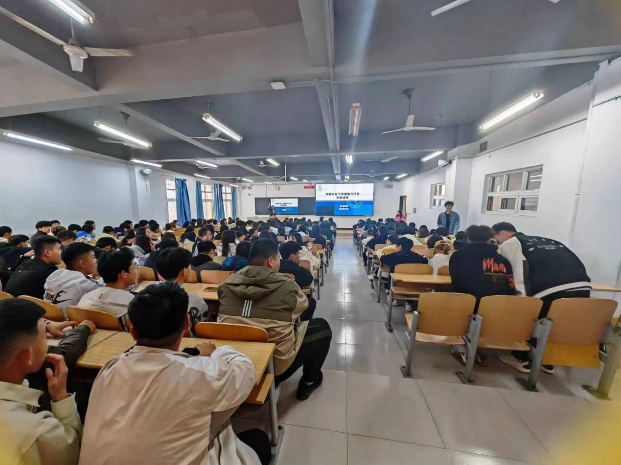 最后,石处长对中国电力行业在“双碳”目标下的未来发展前景进行了展望。他表示,尽管已经取得了显著的成就,但实现“双碳”目标仍然任重道远。鼓励在场的同学们要敢于尝试,勇于创新,不断探索,为构建清洁、低碳、安全、高效的现代能源体系做出贡献。