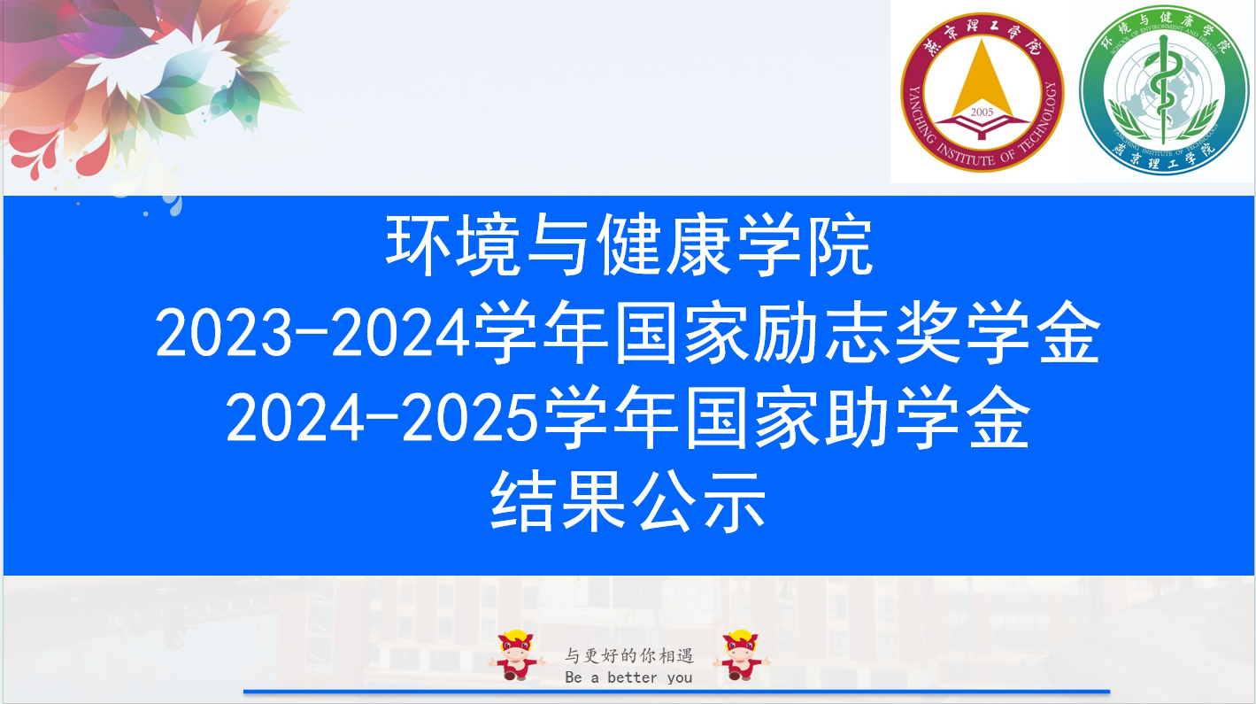 根据财政部、教育部有关评定国家奖助学金的规定,河北省教育厅《关于下达 2024 年本、专科国家奖助学金名额的通知》,燕京理工学院《关于做好2023-2024国家励志奖学金和 2024-2025 年国家助学金的通知》要求,环境与健康学院组织开展了2023-2024学年国家励志奖学金和 2024-2025 学年国家助学金评定工作,本着公平、公正、公开的原则,现将环境与健康学院2023-2024学年国家励志奖学金和 2024-2025 学年国家助学金评选结果公示如下(详见附件1):