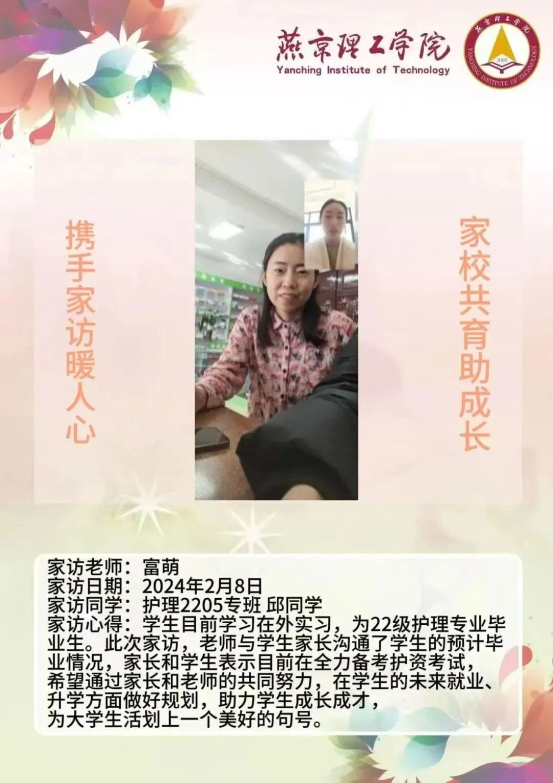此次“大家访”活动是落实育人方针的关键举措,不仅搭建起家校沟通的稳固桥梁,更整合了校内外教育资源,构建起紧密联动的育人格局。未来,学院将持续深化家访成果,定期复盘经验,优化家访流程,确保家访工作常态化、高效化开展。同时,进一步挖掘家庭与社会资源,创新家校共育活动形式,打造更为完善的育人体系,全方位提升人才培养质量,为学生成长成才筑牢根基,在契合教育发展新形势的道路上稳步前行,培养出更多适应时代需求的优秀人才。