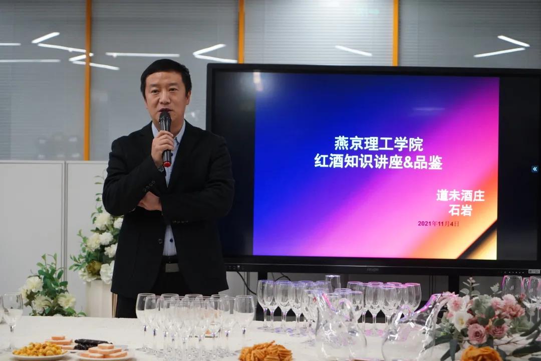 本次活动邀请了道未酒庄的石岩老师为同学们讲解有关红酒的文化知识。石岩老师首先为同学们讲解葡萄酒的起源,并且让同学们充分了解了葡萄酒的种类和葡萄酒酿造历史,又举例说明了喝葡萄酒的好处,通俗易懂的话语全面展现了葡萄酒的益处;