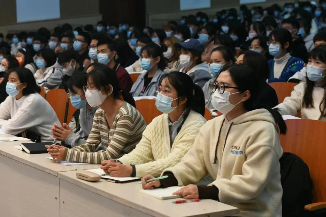 于老师从探究英语习得的底层逻辑中,结合中国学生雅思英语学习情况及实验报告,对同学们进行了通俗易懂的讲解,激起了同学们对英语学习的兴趣。于老师又用生动形象的实例来论证发音的重要性,“用语音实验中的日本人”这一生动的例子和用不同的测试结果,完美诠释了音节准确的重要性,并讲述了“语法—翻译法”这一中国学生惯用的学习方法所带来的局限与影响,引发了在场同学的反思。