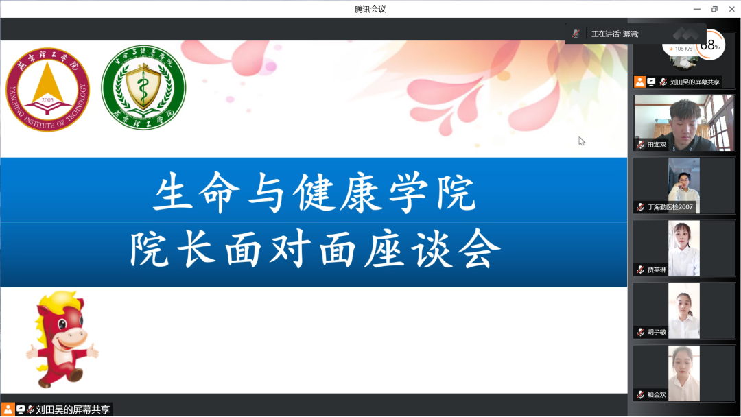 为了解学生学习情况,增强学生自我管理能力,5月11日生命与健康学院开展院长“面对面”线上座谈会,此次会议由贾孟霖同学主持。
