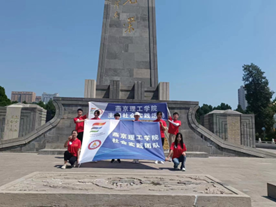 实践团来到了邯郸市邯山区烈士陵园,迎面巍然耸立的是有着毛泽东主席题写的“无上荣光”几个大字的晋冀鲁豫烈士纪念塔,象征着中国人民艰苦奋斗的革命历程。随后,实践团参观了人民英雄纪念墓,两侧大型群雕浑然一体,气势恢宏,庄严肃穆,体现了抗战胜利的来之不易。
