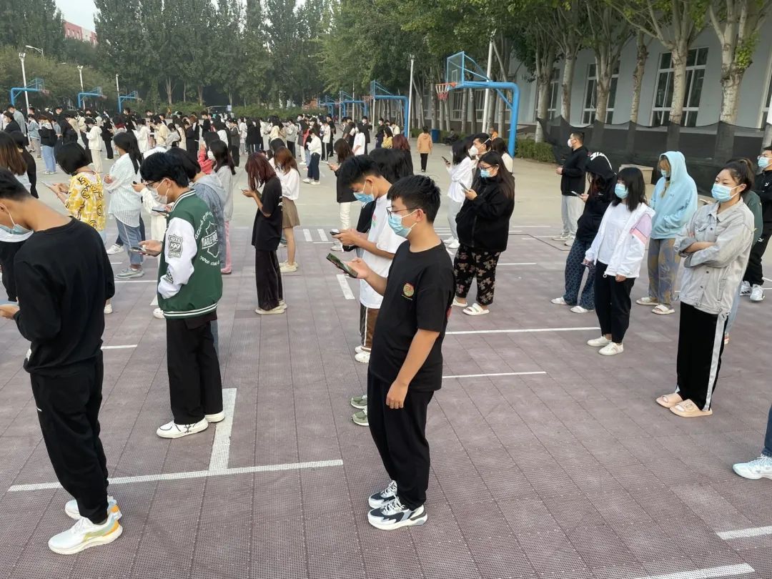 学院高度重视本次核酸检测工作,制定全员核酸检测工作方案,明确场地安排,排队过程中,老师和学生干部指挥着同学们按照相应的位置排队,严格遵守“一米线”距离。各岗位负责人严格按照分工要求,有序进行检测工作,旨在通过全体师生的共同努力,顺利、有序、高效地完成本次核酸检测工作。
