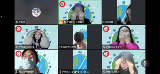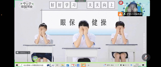 活动最后,通过世界卫生组织公布的数据,得知全世界目前约有3700万人目盲,1.24亿人视力低下,其中,四分之三的盲症病例是可以治疗或预防的。因此,为加强同学们对眼睛的了解以及对近视的危害性的认知,增强学生爱眼意识,主持人张桐鑫带领大家学做眼保健操,学习如何爱护好自己的眼睛。