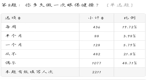 活动伊始,健康志愿服务队经过线上调查问卷得出:“大多数人都没有参加过爱眼活动并且做眼保健操的频率比较少,同学们的爱眼意识总体来看还比较薄弱”,为此环境与健康学院志愿服务部针对上述情况开展主题为“科学用眼,关爱视力健康”的线上会议,以此来让同学们进一步学习爱眼知识。
