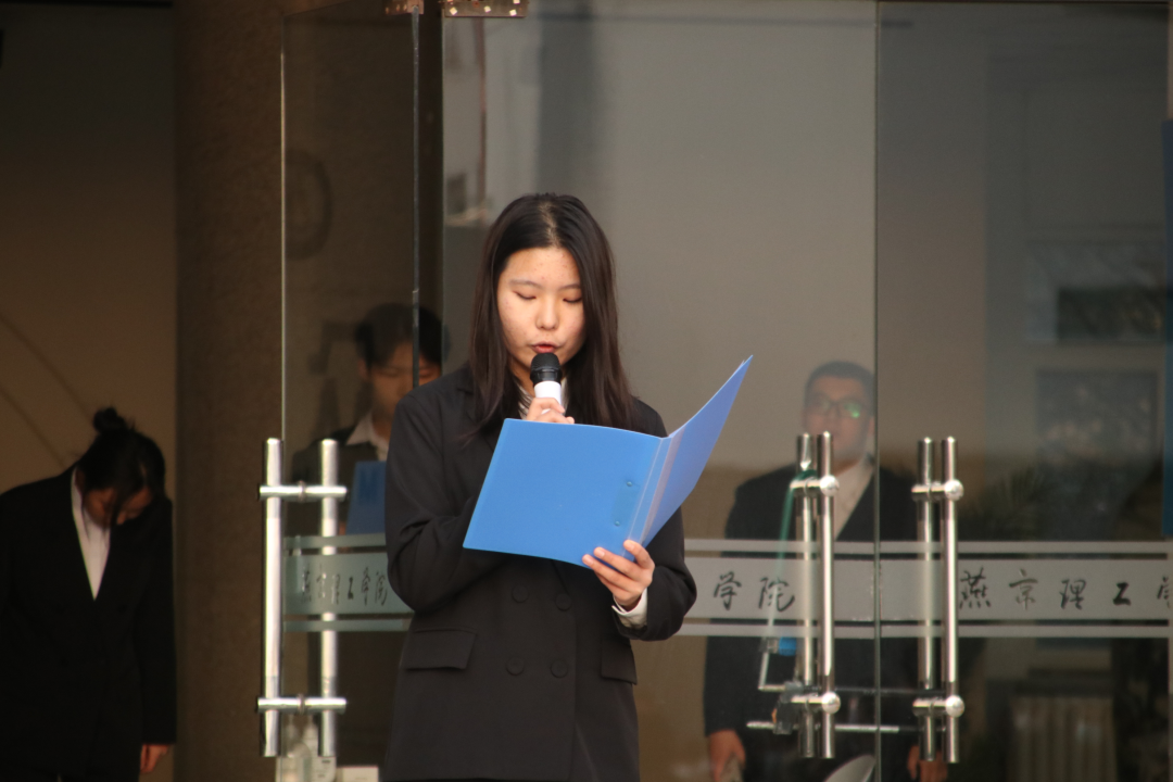 最后,学生代表张加玖在发言中说到:“作为新时代的大学生,作为燕京理工学院新生,要时刻秉承校训,坚守初心,开创未来,传承红色基因,赓续红色血脉,争做时代新人。让信念在奋斗中闪光,让青春在创造中升华。”