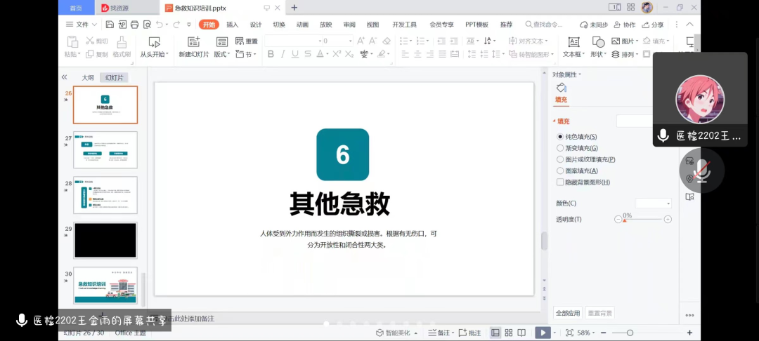 为了让同学们了解更多急救知识、增强安全意识,提高自救和救护他人的能力,11月18日,环境与健康学院红十字志愿服务队开展了线上急救知识培训活动。