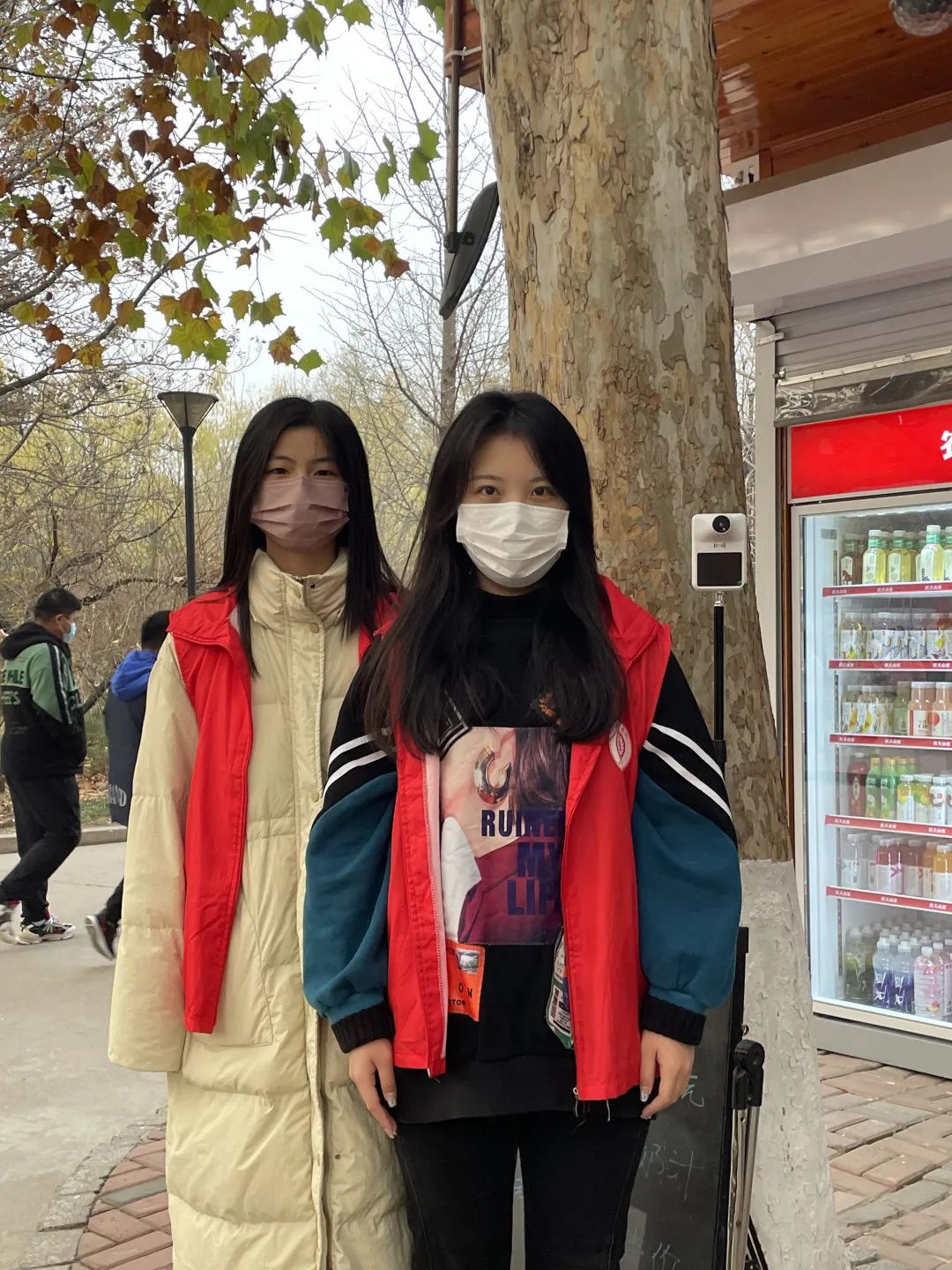 志愿者们站在自己的岗位上,为进一步筑牢校园疫情防控安全防线努力坚守,督促同学们戴好口罩,勤洗手注意卫生,不聚集,宣传防疫相关知识。“志愿红”成为冬日校园一道靓丽的风景线。