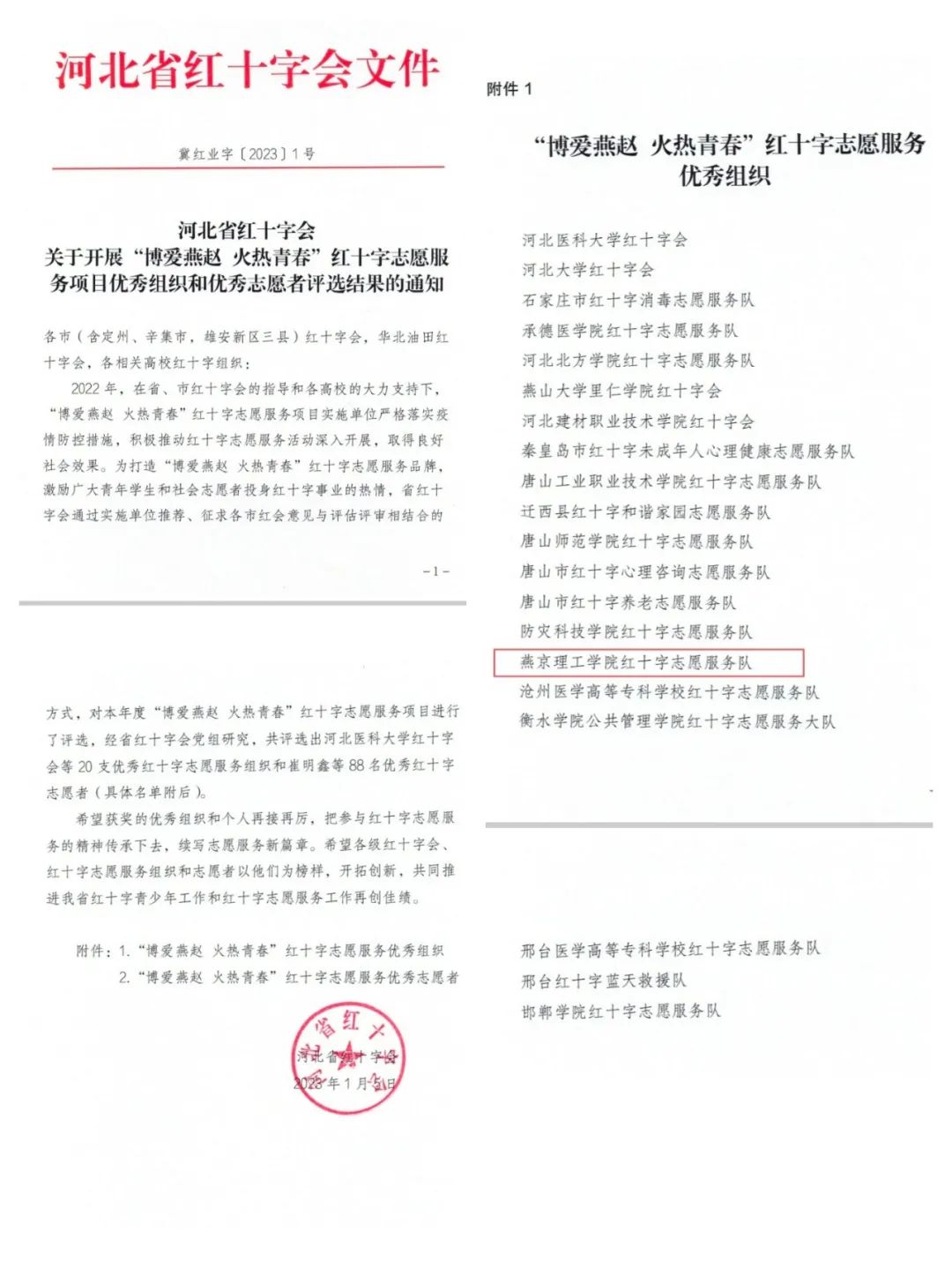 喜报–燕京理工学院红十字志愿服务队荣获“博爱燕赵 火热青春”红十字志愿服务优秀组织