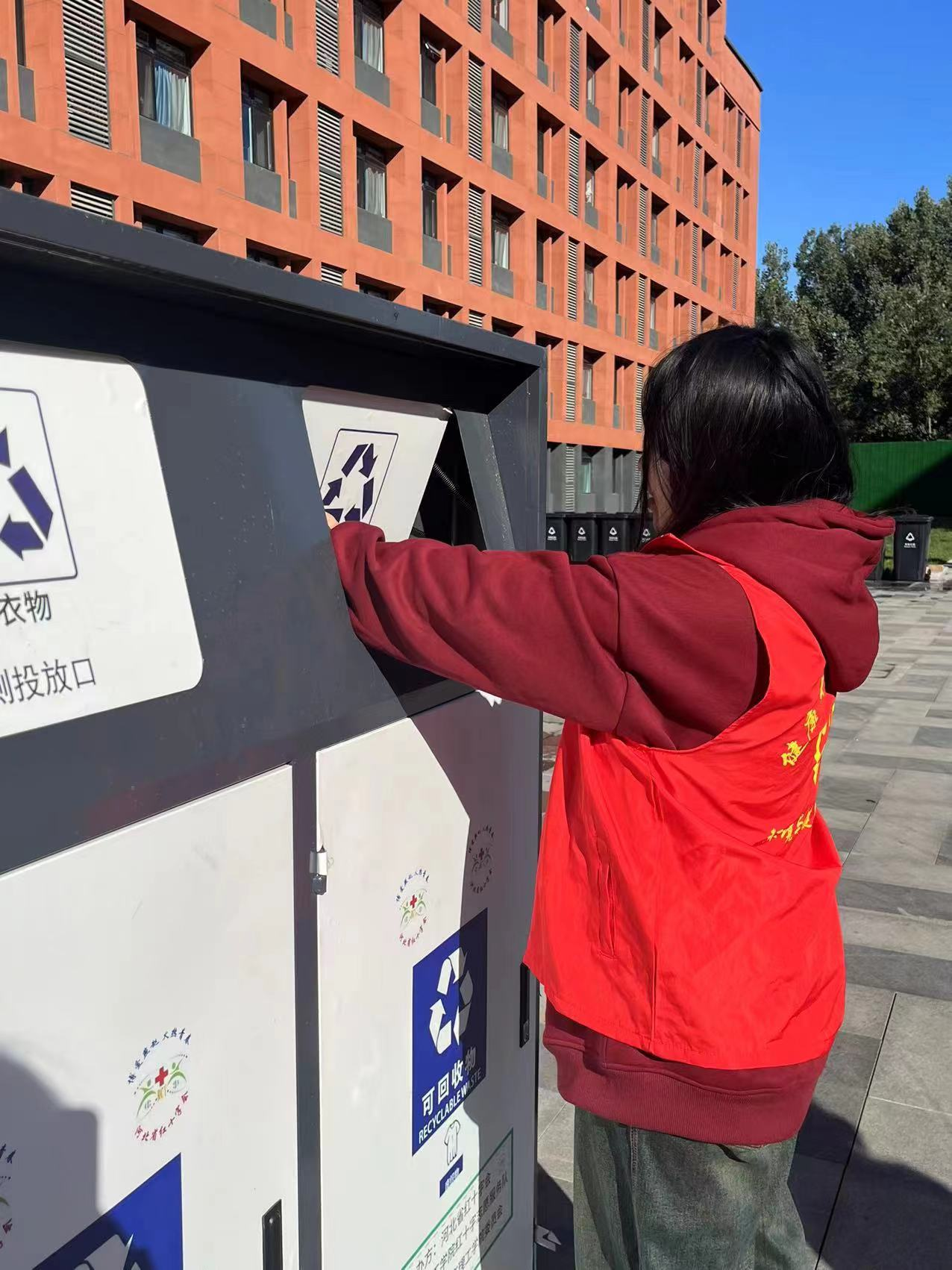 活动中,志愿者将从各个地方回收的物品放置到回收箱中,活动最后,志愿者将收获满满的物品进行清点、分类、整理,将绿色回收理念传递下去,将温暖传递下去。