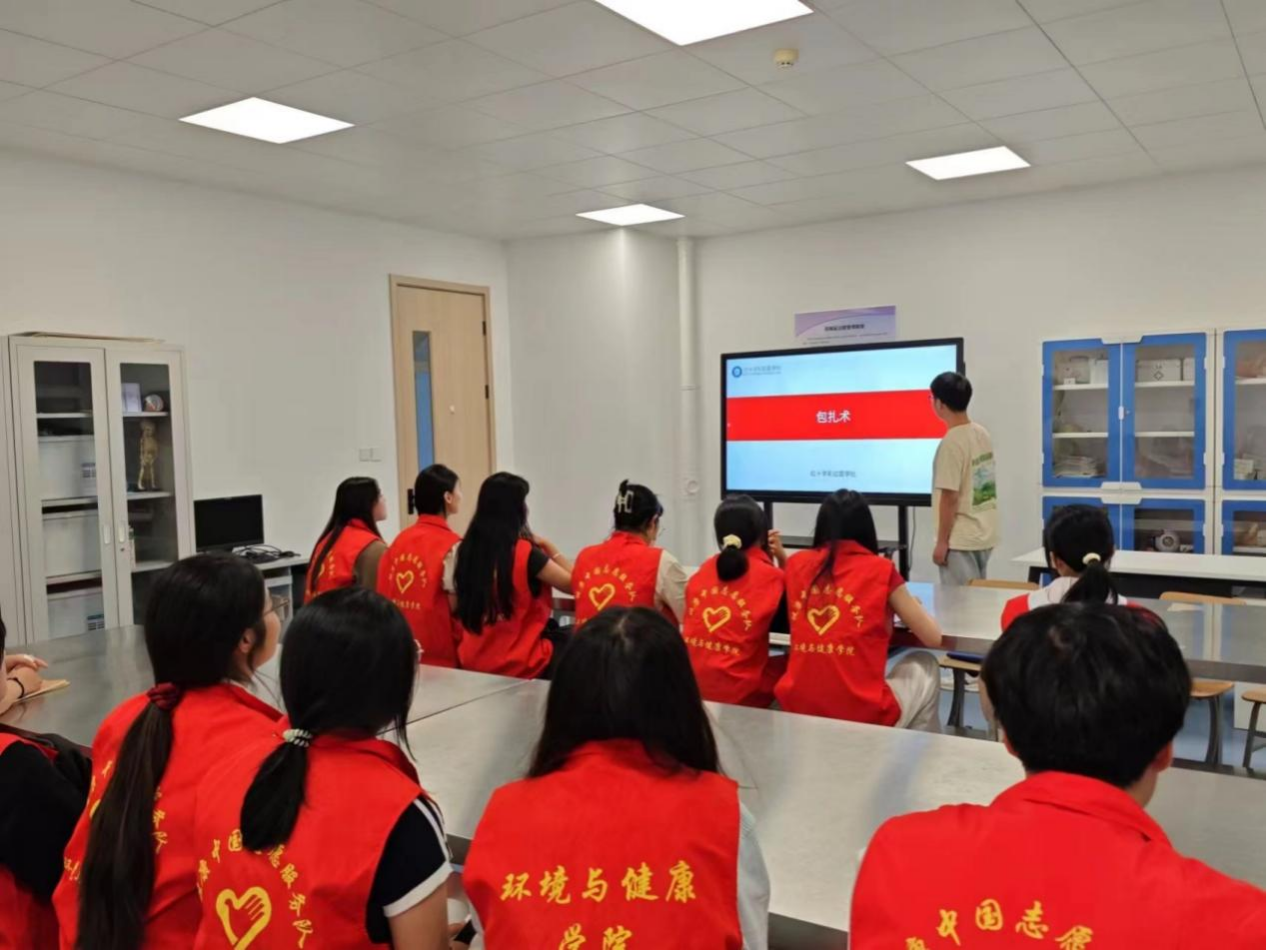 活动前期,燕京理工学院健康中国志愿服务队为队员开展应急救护技能培训。
