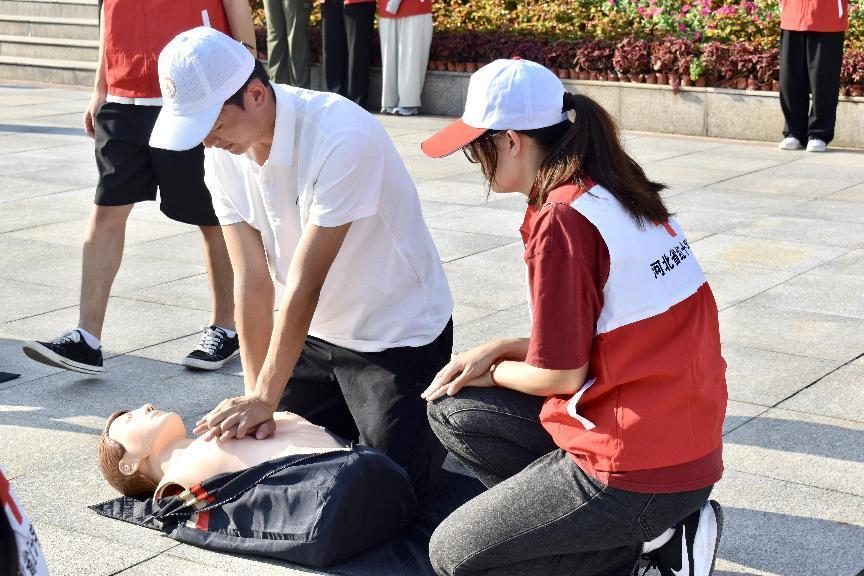 活动现场,专业的急救培训人员通过理论讲解、现场演示和实际操作等方式,向参与者详细的讲解了心肺复苏的具体急救方法。