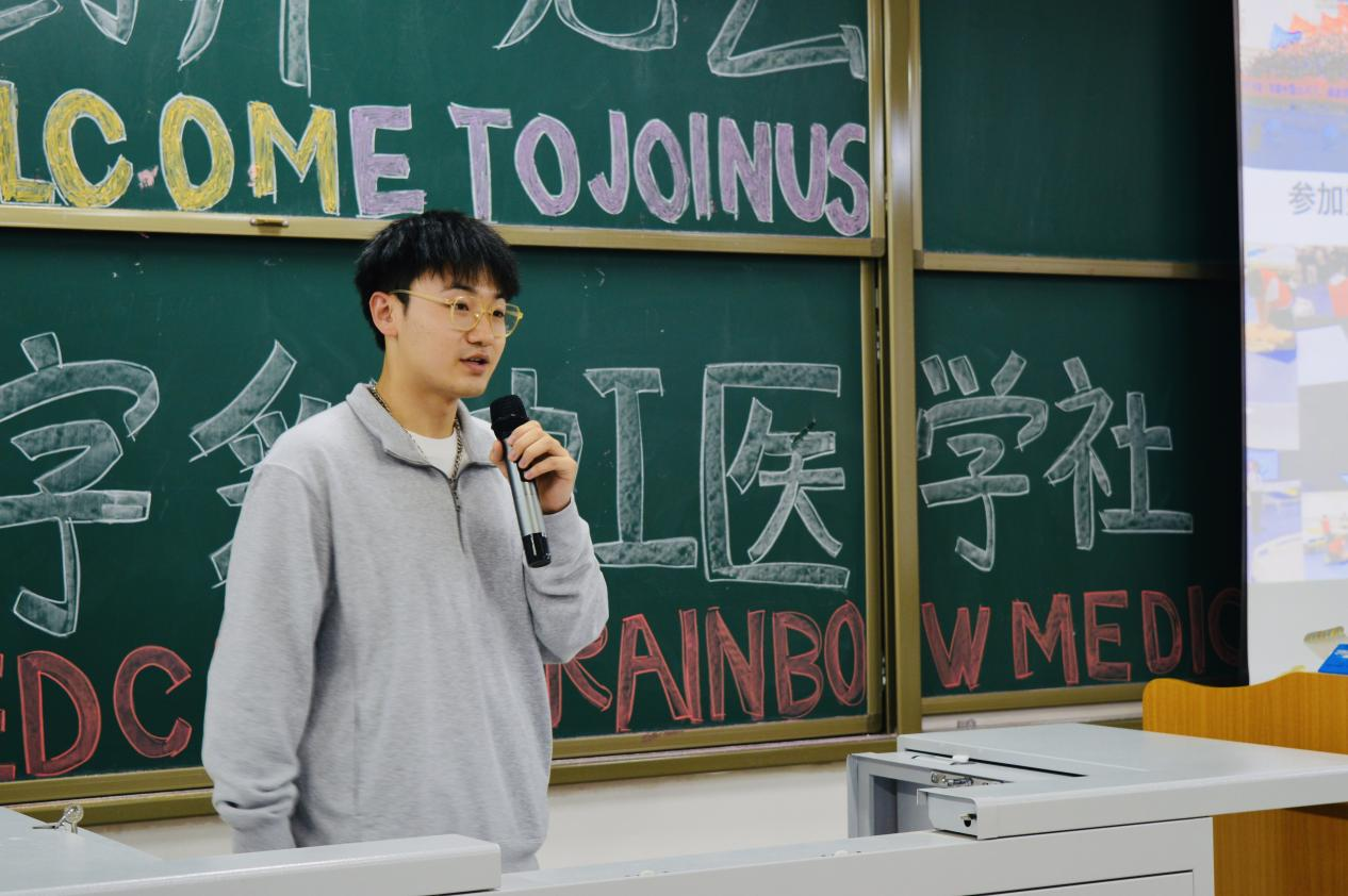 迎新会现场气氛热烈,新老成员齐聚一堂。社长王东亮首先发表了热情洋溢的欢迎致辞,对新成员的加入表示热烈欢迎,并介绍了社团的发展历程、宗旨和目标。通过社长的介绍,新成员们对红十字彩虹医学社有了更深入的了解,也对未来的社团活动充满了期待。