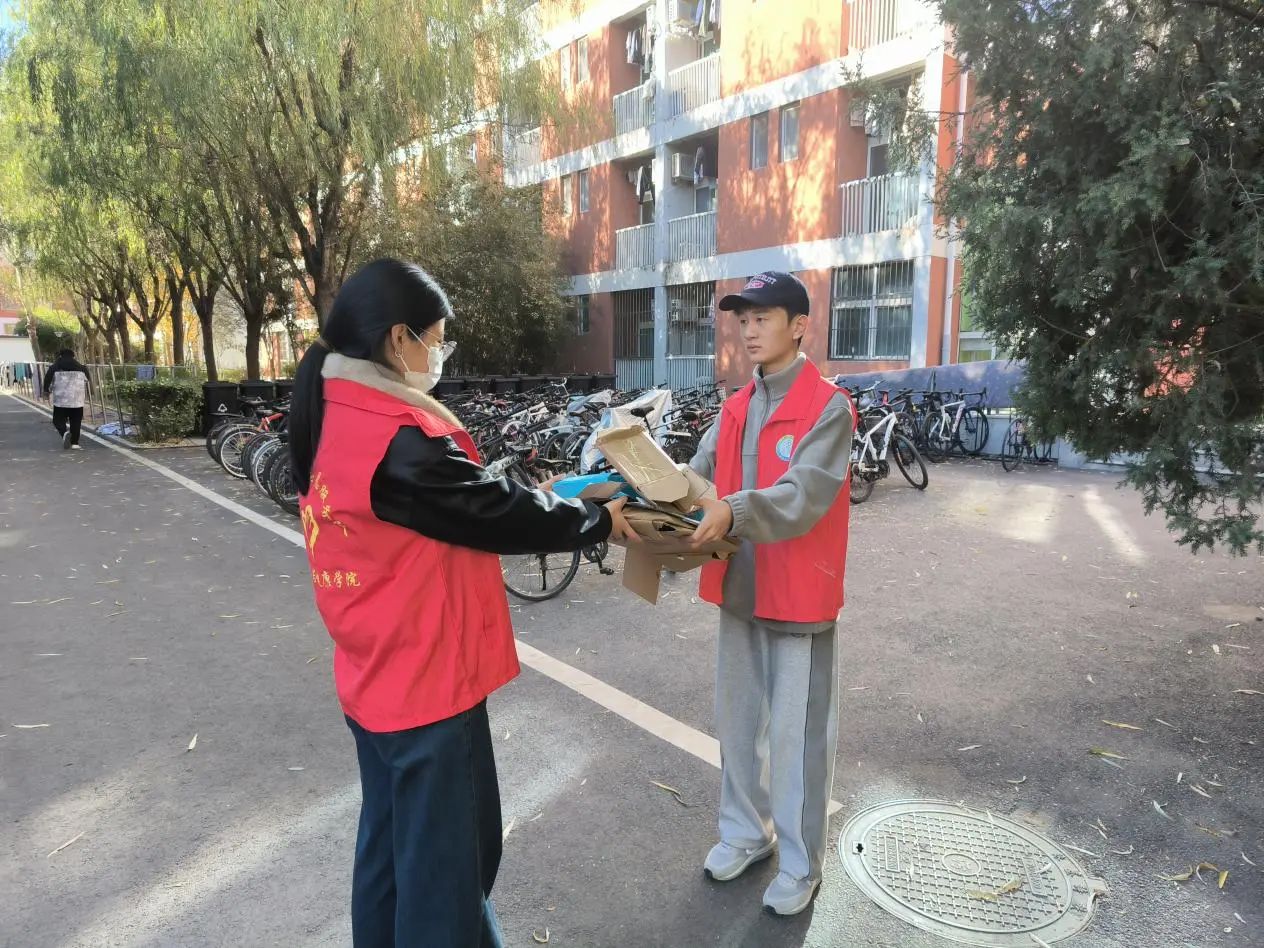 学院部门自发组织了志愿者,向同学们收集快递纸盒、废旧纸张等可回收物品。之后志愿者们在可回收物投放点集合,对可回收垃圾进行定点投放。虽然都是一些简单重复的工作,但是志愿者们都认真地完成了任务,直至活动圆满结束。