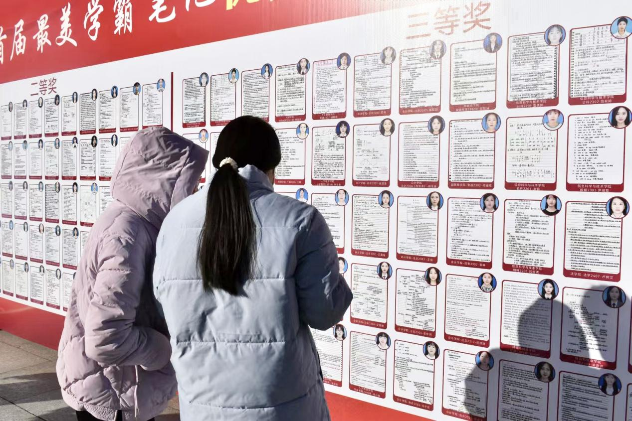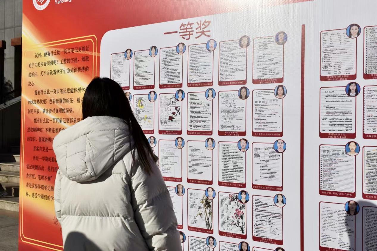 笔记如舟承载智慧,记录似酒酿就才华。在如今的学习生活中,做笔记不失为一种高效的学习方式。为鼓励学生以饱满的热情投入学习,激励学生做好笔记,11月29日,2024年首届最美学霸笔记优秀作品在M楼前广场进行展示,环境与健康学院组织获奖人员于M楼前广场优秀笔记展示处交流学习。