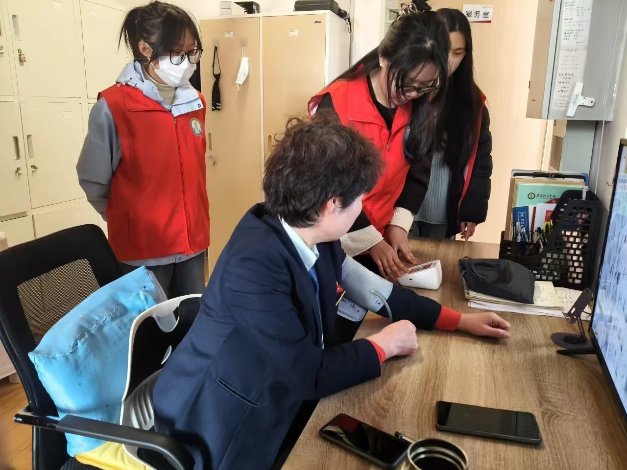 春回大地,万物复苏,在这个充满生机的季节里,环境与健康学院健康中国志愿服务队于3月8日组织“春日公益测压—感恩宿管相伴”洋溢温情的公益活动,为默默付出的宿管人员们免费测血压,在乍暖还寒的春日,送上了一份贴心的关怀。