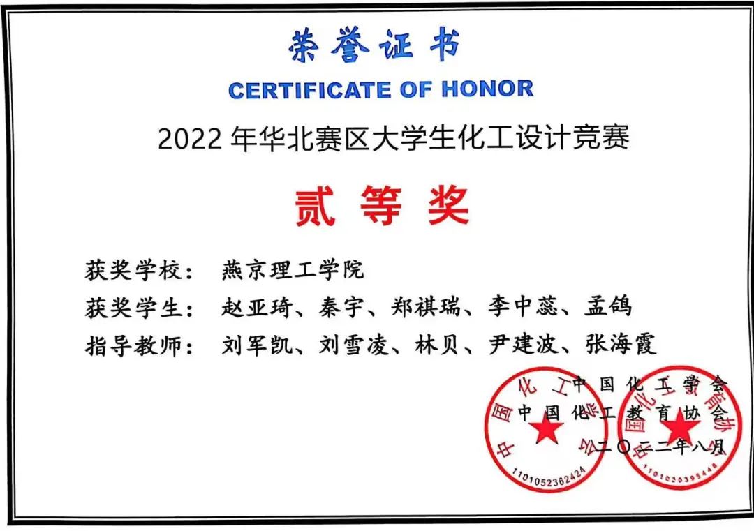 “天正设计杯”第十六届全国大学生化工设计竞赛成绩公布,燕京理工学院环境与健康学院学子再创佳绩,获全国二等奖1项、华北赛区二等奖1项、河北省一等奖1项,二等奖1项,三等奖1项。