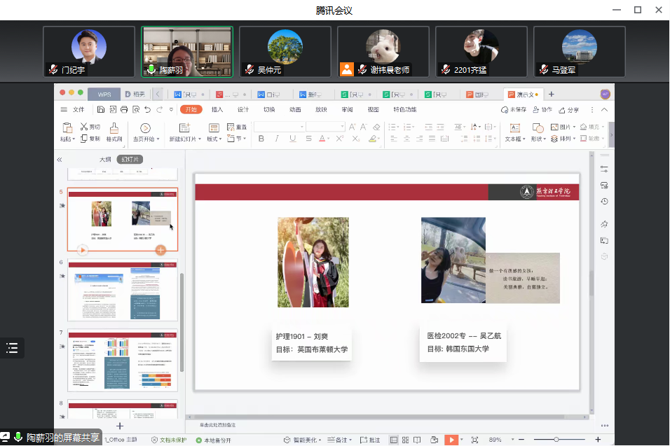 会议伊始,环境与健康学院马登军院长针对疫情结束后的家校合作鼓励学生积极发展展开论述,并结合学院专业讲述了学生学历提升的重要性,以自身发展经历鼓励学生深造提升学历。而后,门纪宇书记分析了本学院学生就业形势,并介绍了学院各专业可以申请的院校。陶薪羽老师针对学院今年的国内升学率进行了深度解读,并结合自身留学经历分析了学生回国后就业情况。而后,会上播放了学生代表李坤泽同学以自身深造经历录制的祝福视频,鼓励学生升硕学习,助力自身成长、发展。
