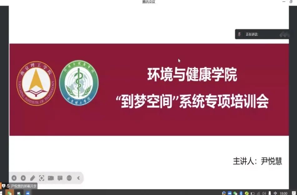为提高“到梦空间”管理系统管理员对系统的使用熟练度,更好的推进本院学子关于“到梦空间”的学习与使用。环境与健康学院团总支于 2023年4月20日举办“到梦空间”系统使用培训会。本次培训会由我院团总支指导老师唐思如老师主持,线上线下同步进行,线上由尹悦慧同学主讲,线下由孙文羽同学主讲。