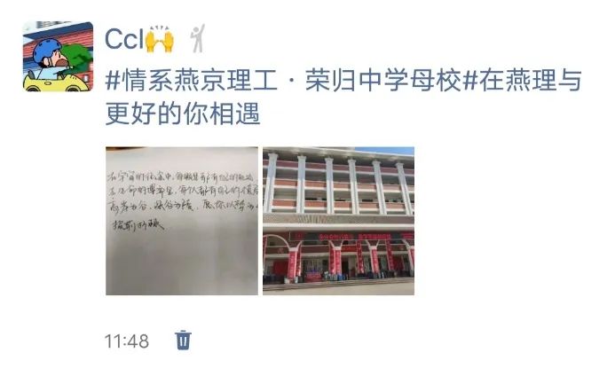 希望以后有机会能回到母校,给我的学弟学妹们分享,我在成长经历。我永远不会忘记老师对我们的多年培育之恩,并用实际行动为母校争光。