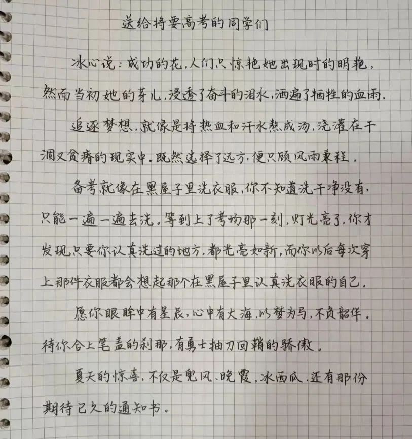 愿你眼眸中有星辰,心中有大海,以梦为马,不负韶华。待你合上笔盖的刹那,有勇士抽刀回鞘的骄傲。