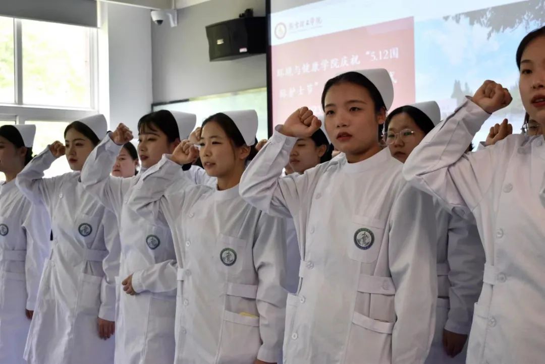 为弘扬南丁格尔精神,倡导同学继承和弘扬南丁格尔不畏艰险、救死扶伤、勇于献身的人道主义精神。5月12日,环境与健康学院举办纪念“5.12国际护士节授帽仪式暨宣誓大会”。