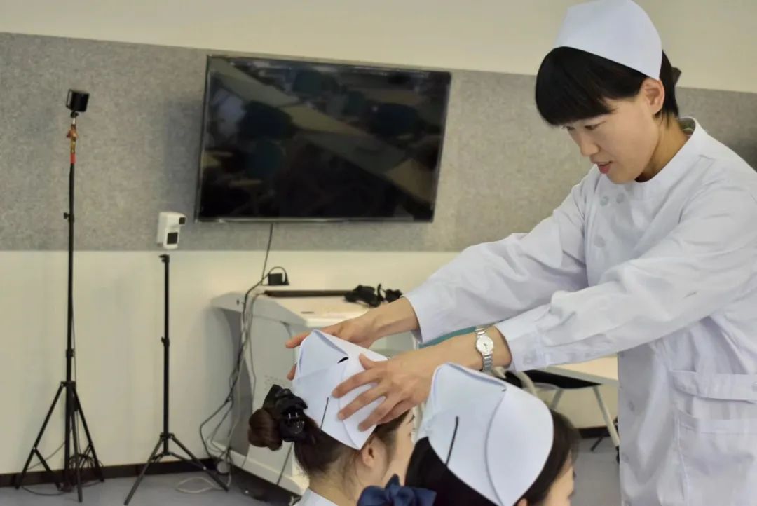 阳光明媚的上午,护理专业的老师在居里楼为同学们举行了庄严隆重的护士授帽仪式。他们身着洁白的护士服,展现了作为一名护士的优良精神风貌。他们低下的头是不畏前行的决心,传递的帽是奋斗不止的青春新护士。在老师的带领下,一句句掷地有声、坚决铿锵的誓言久久回荡在她们心中,决心也在句句誓言中升华。