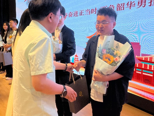 六名优秀毕业生分享完他们的在校经历后,《燕理学子之歌》缓缓响起,环境与健康学院院领导以及各位辅导员老师为优秀毕业生们送上了精美的礼品和鲜花,“勤奋创新,璞玉成器”,这份礼物不仅仅是对他们的一份赞许,更承载着学校对他们的毕业祝福,展望未来,那必是繁花似锦、星光万里的康庄大道。