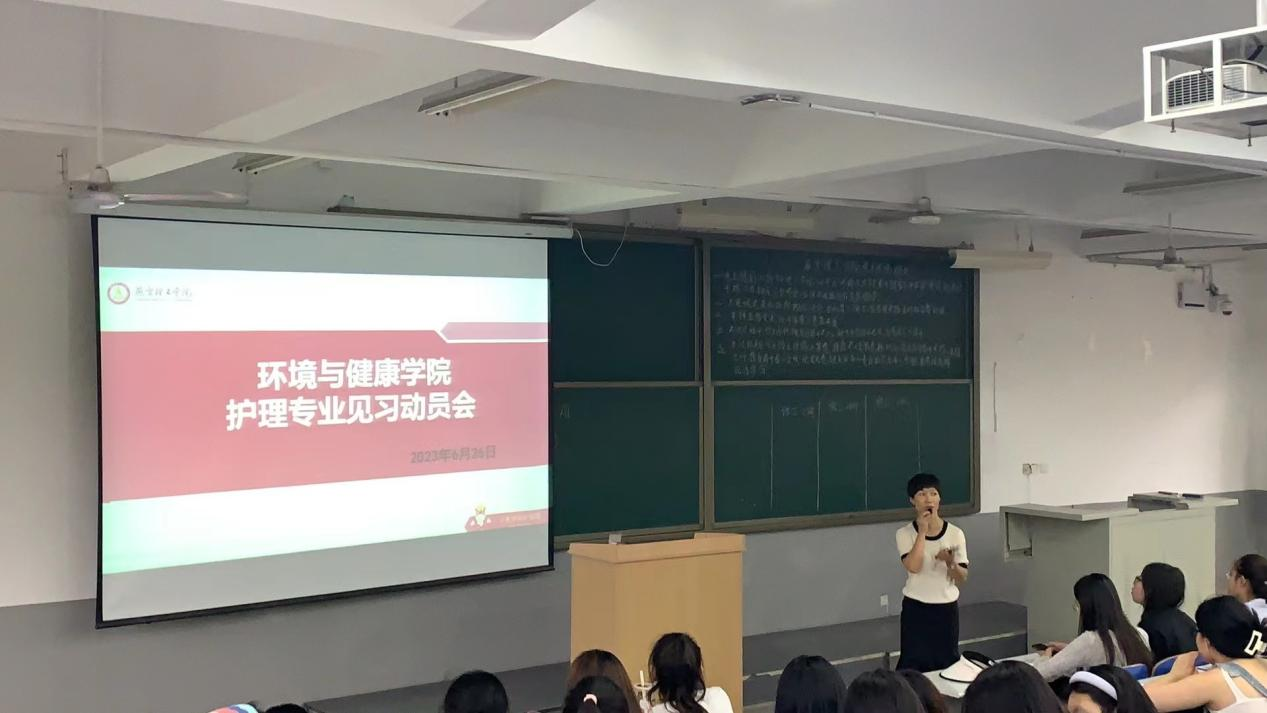 为贯彻落实国家教育部和卫健委有关“加强医学生临床技能和医德素养的培养,落实早临床、持续临床、反复临床”的构想,护理学专业以职业岗位需求为导向,以培养学生综合素质为目标,改革人才培养模式,重构教学做一体化课程体系,探索了“校内实训、临床见习、顶岗实习”三位一体实践教学培养模式。2023年6月26日下午,环境与健康学院王振方教授,张娟老师在C401组织召开了护理专业见习动员会,参加会议的还有2021级和2022级护理学的全体同学。