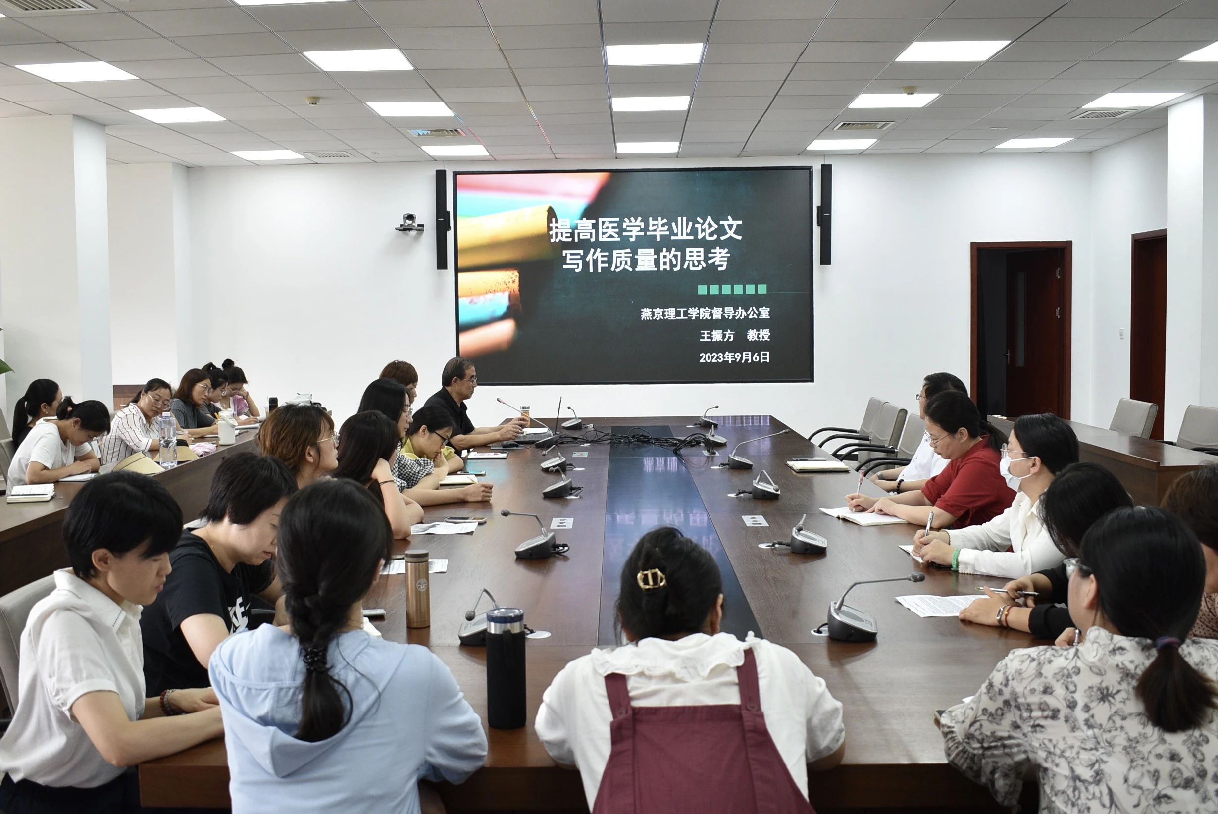 为了更好的部署和开展2024届护理学本科毕业论文指导工作,提高毕业论文质量。2023年9月6日下午,环境与健康学院邀请了燕京理工学院督导办公室王振方教授为护理学本科毕业论文指导教师开展了以“提高医学毕业论文写作质量的思考”为题的专题讲座。会议由环境与健康学院副院长刘军凯主持。