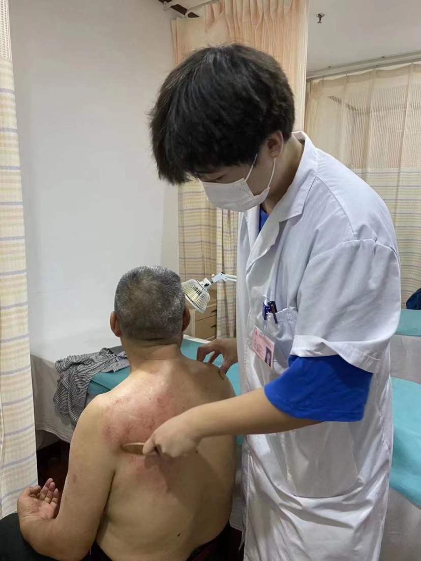 “我最开始接触中医最开始是学习的中医刮痧,当时对中医还没有很大的兴趣。