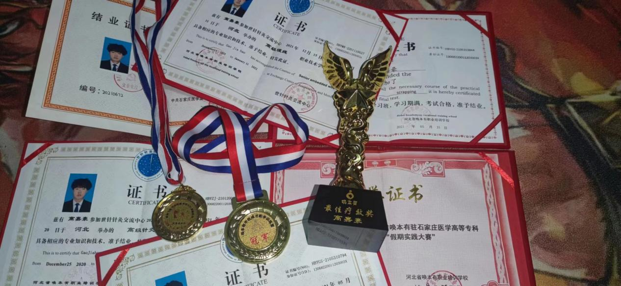 我目前的成绩都是在刻苦换来的。学习针灸都是2个人结组互相扎,到现在大概扎了不下身上200个穴位。大学里的寒假以及暑假我都在集训上课,也让我对中医有了更深的了解。”