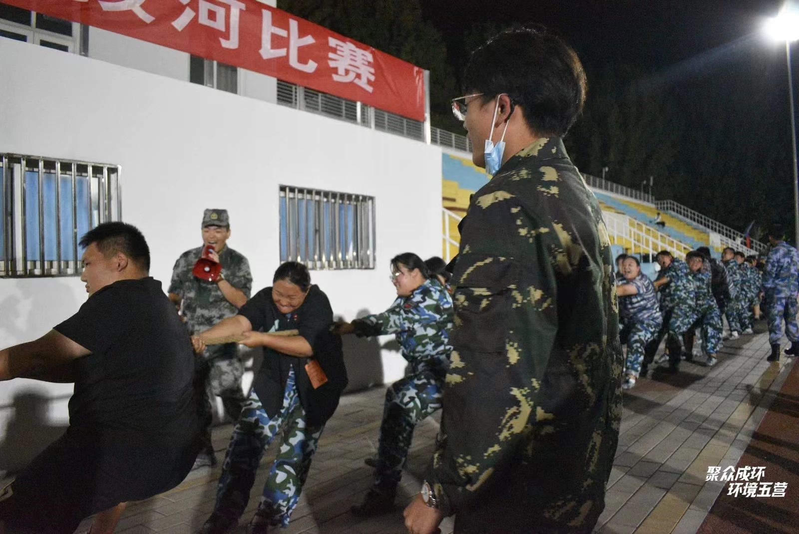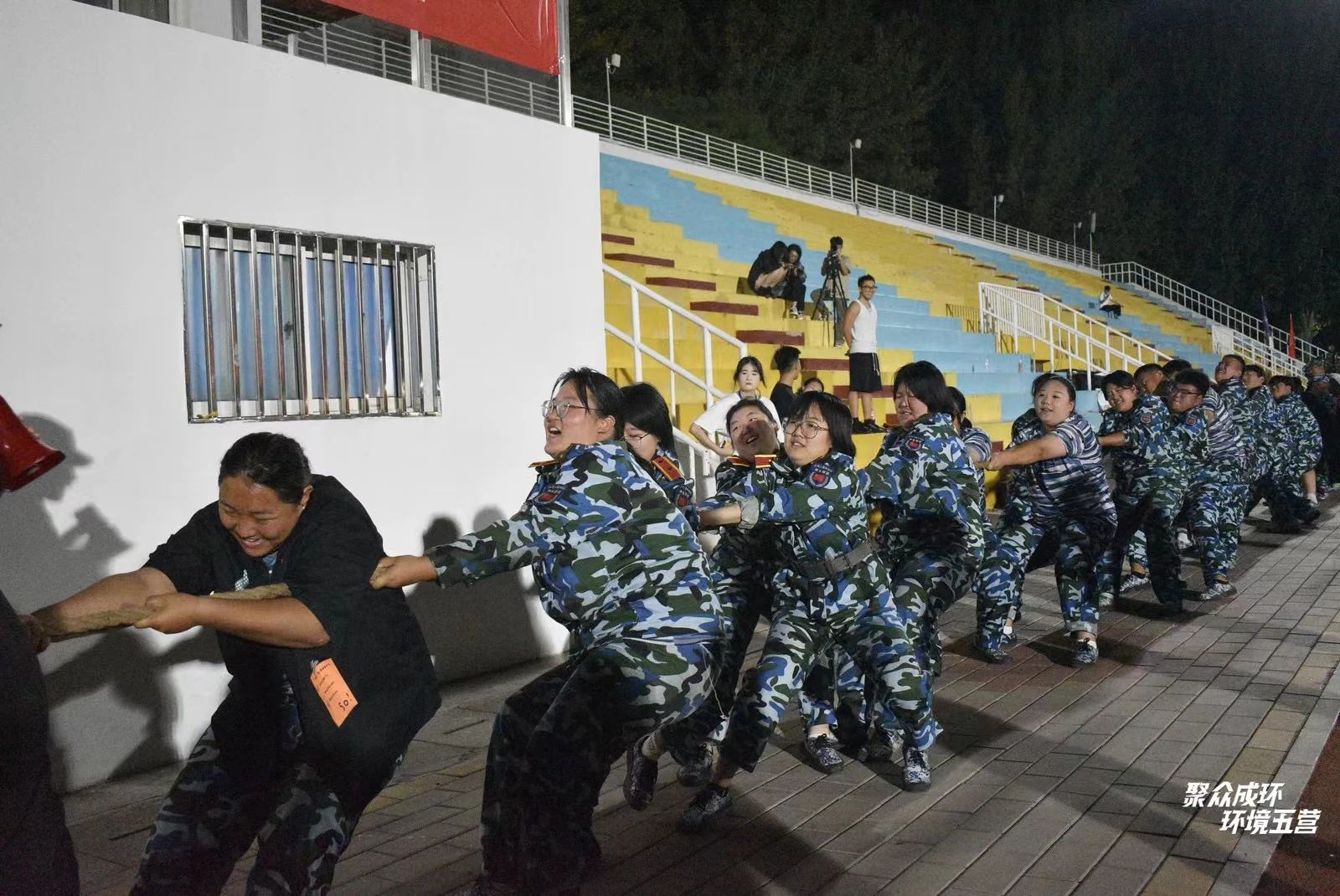 拔河比赛上,同学们齐心协力,口号气势如虹,分分拿出勇夺第一的气势。