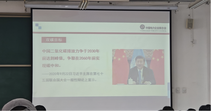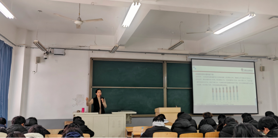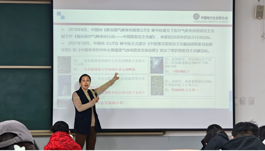 之后,石处长对中国电力低碳发展的总体情况进行了分析。石处长用一系列数据向环境与健康学院环境工程专业全体师生分别展示分析了全国的发用电水平、电力结构、电力新业态以及清洁低碳发展水平等内容。