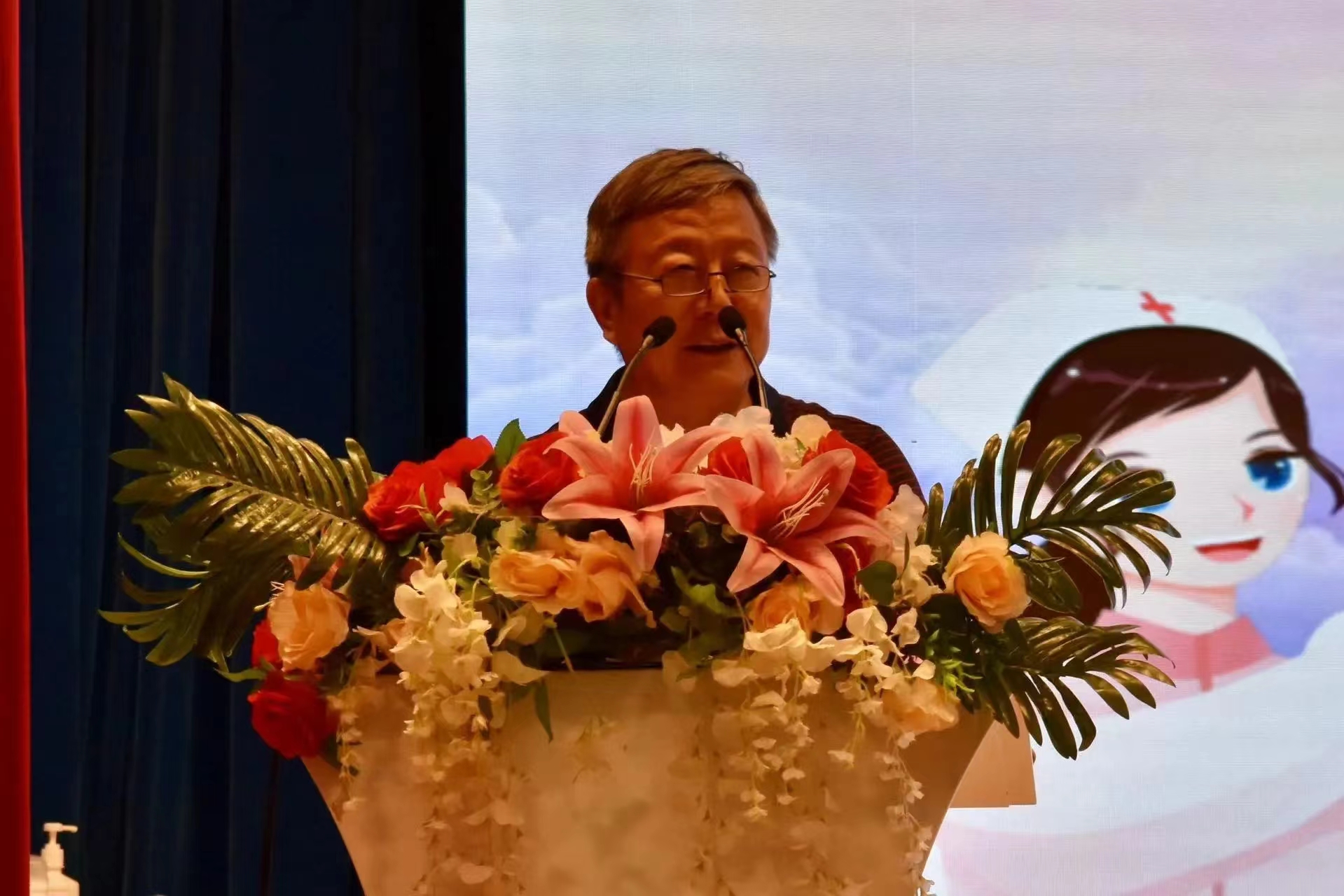 院长马登军教授代表学院向辛苦奋斗的每一位医护工作者表达了节日的祝福和感谢。他高度赞扬了护士们在医疗事业中做出的巨大贡献,并表示学院高度重视护理人才培养,致力于向社会输送高素质应用型护理人才。他希望每一位学生都能成为护理事业的栋梁之材,为人民健康福祉做出更大贡献。着力提高个人专业素养,努力学习,不断吸取新知识,新技术,努力提高自己,保持爱心、真心和责任心,认真对待每位患者,为保护人民群众的生命健康奉献自己的力量。