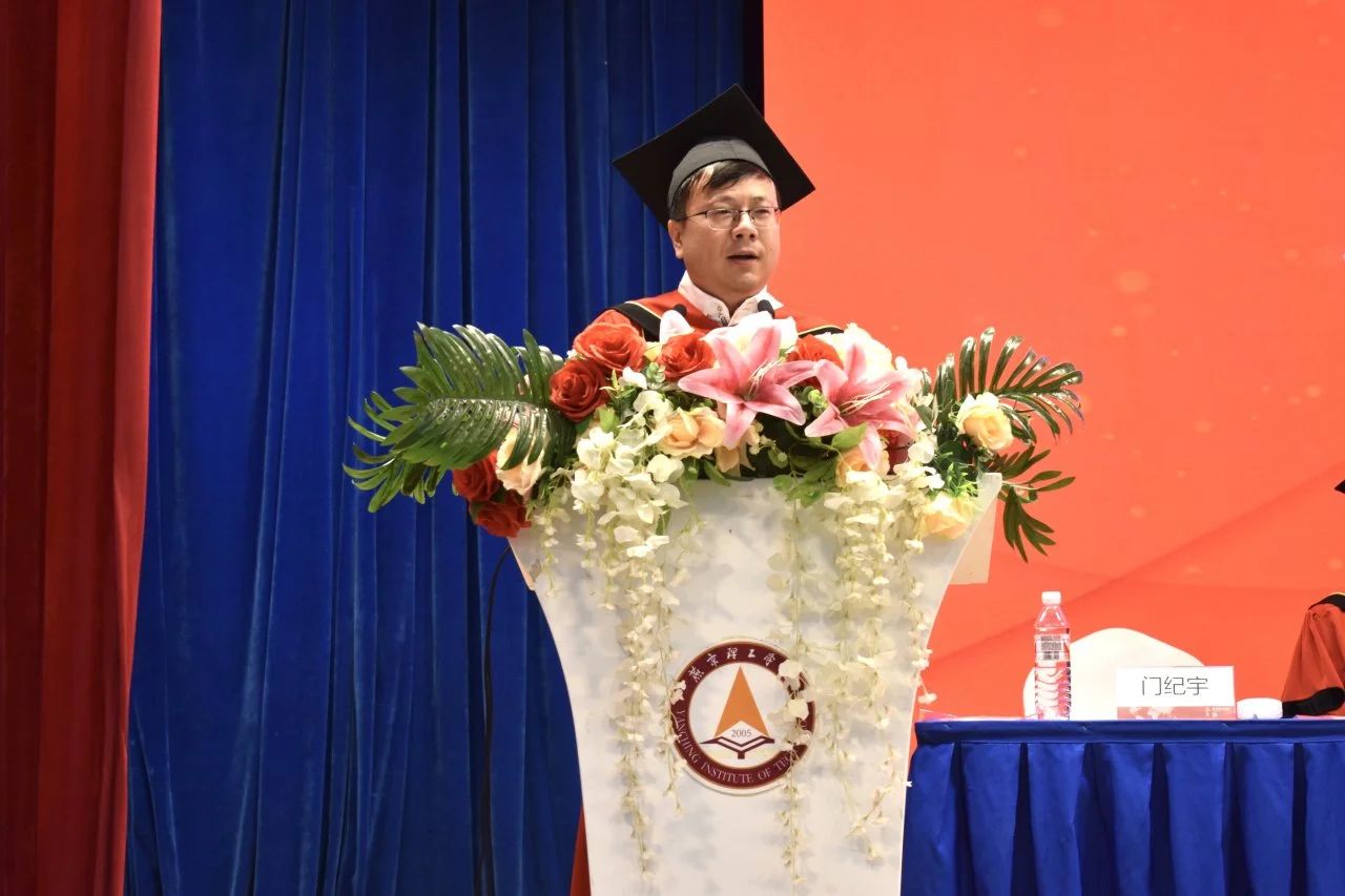 然后,刘军凯副院长作为教师代表发言,刘院长用深情而真挚的言语,表达了对所有毕业生们的不舍。叮嘱同学们:不同的视野决定着一个人不同的人生,视野太窄太近看到的只是当下,看到的只是自己,大家要跳出自我看自己,站在世界看自己,站在未来看自己。天道酬勤,期待毕业生们在未来展现不凡风采。