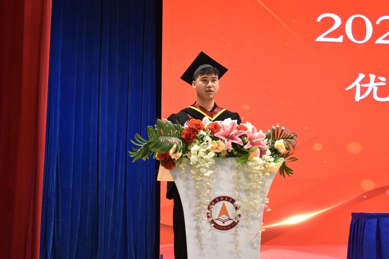 优秀毕业生代表李铮的发言充满了对老师和同学们的感激和不舍,祝福母校辉煌永驻,再谱华章,愿同学们历经千帆,归来仍是少年。