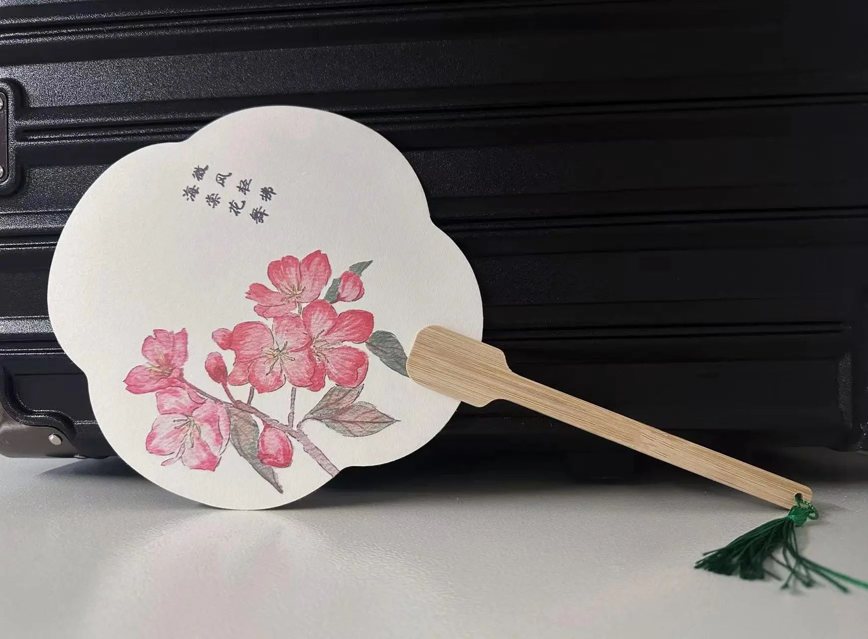 然后,毕业生辅导员老师们为毕业生代表赠送海棠花扇,海棠花扇由学院武雪老师原创设计,“海棠花”为母校校花,表达了全体优秀毕业生们对母校的怀念和不舍,也激励着大家积极面对未来,追求幸福美满的生活。