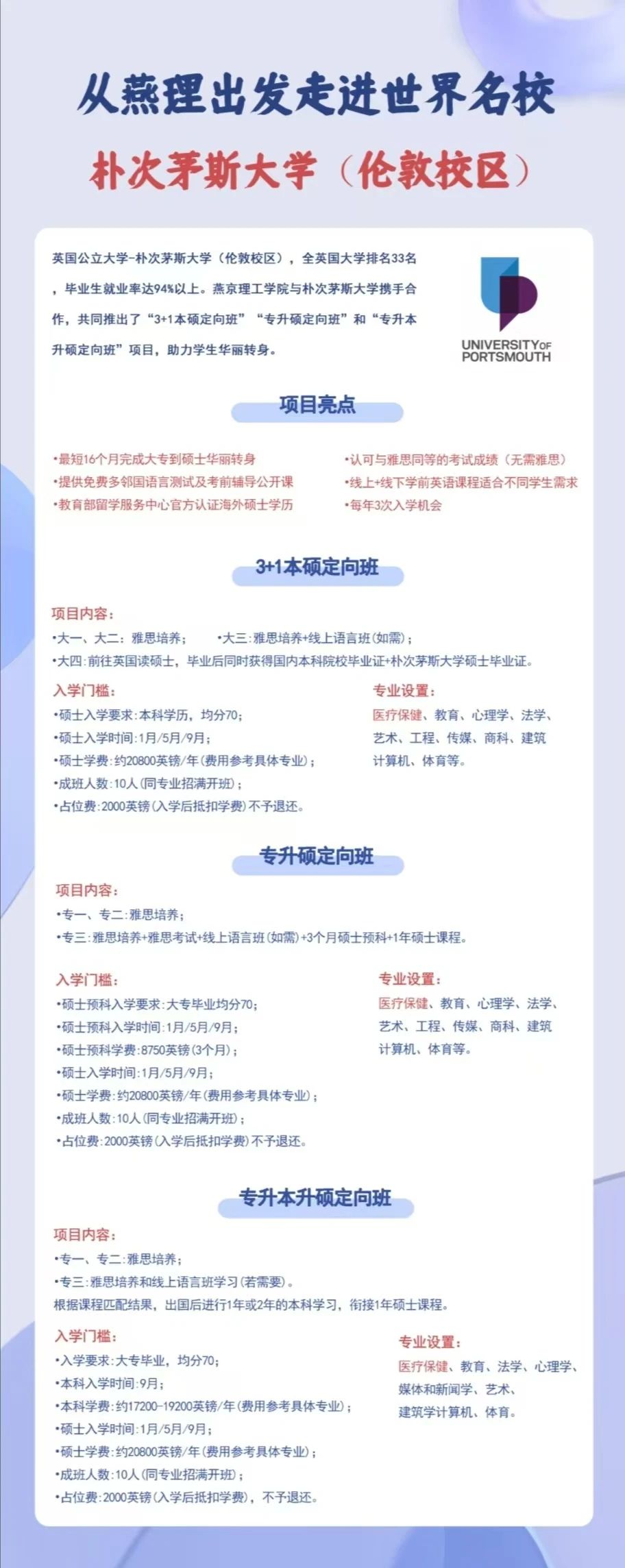 【本(专)硕直通】从燕理出发走进世界名校——环境与健康学院篇:朴次茅斯大学(伦敦校区)