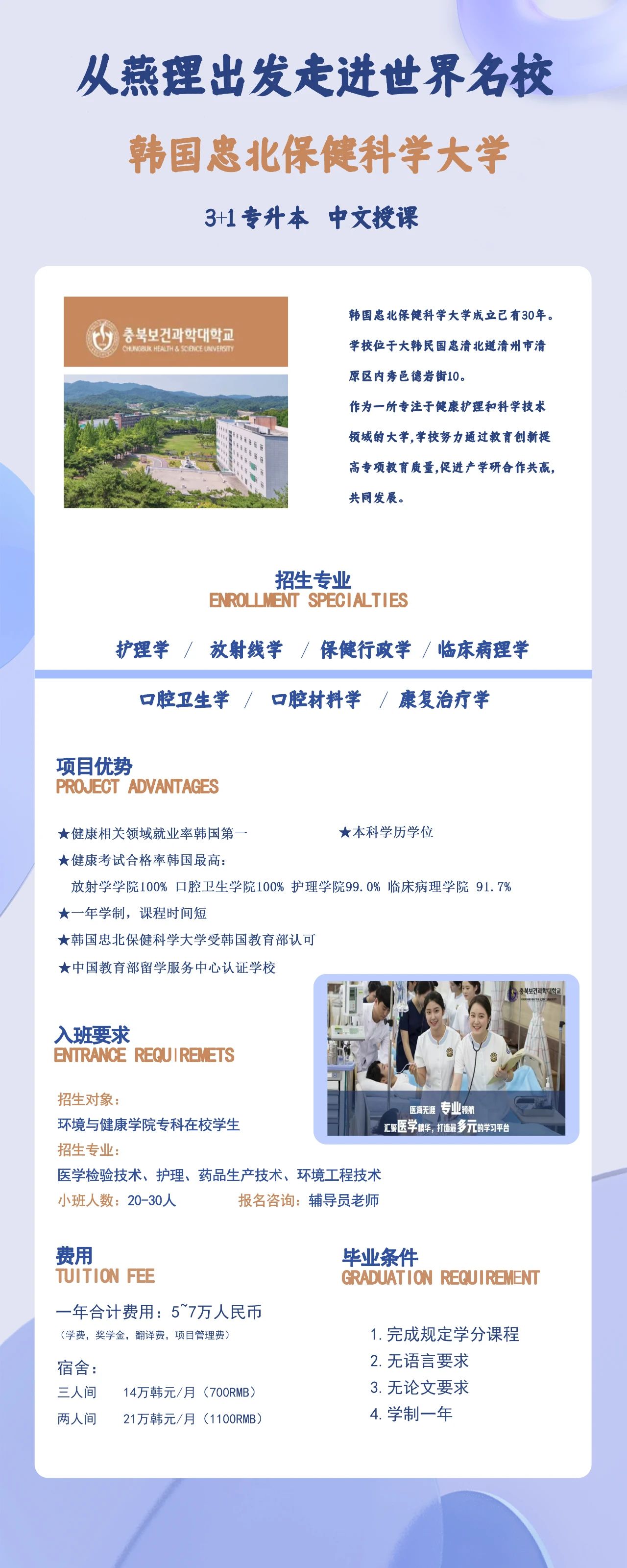 【本(专)硕直通】从燕理出发走进世界名校——环境与健康学院篇:韩国忠北保健科学大学